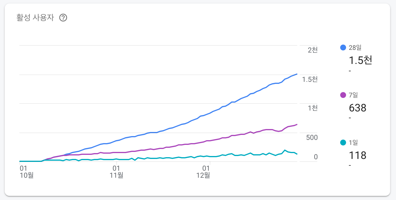 출시한지 2개월 이 되어가는 지금, 아직 한참 멀었지만 반응은 괜찮은 편입니다. 앱을 사용하는 유저들의 니즈를 4년 전부터 분석했고, 결과적으로 핵심 기능은 빠진 상태로 릴리즈 하였는데 꾸준한 상승곡선을 그리고 있으니 핵심 기능을 넣은 업데이트 이후의 지표가 궁금해집니다.