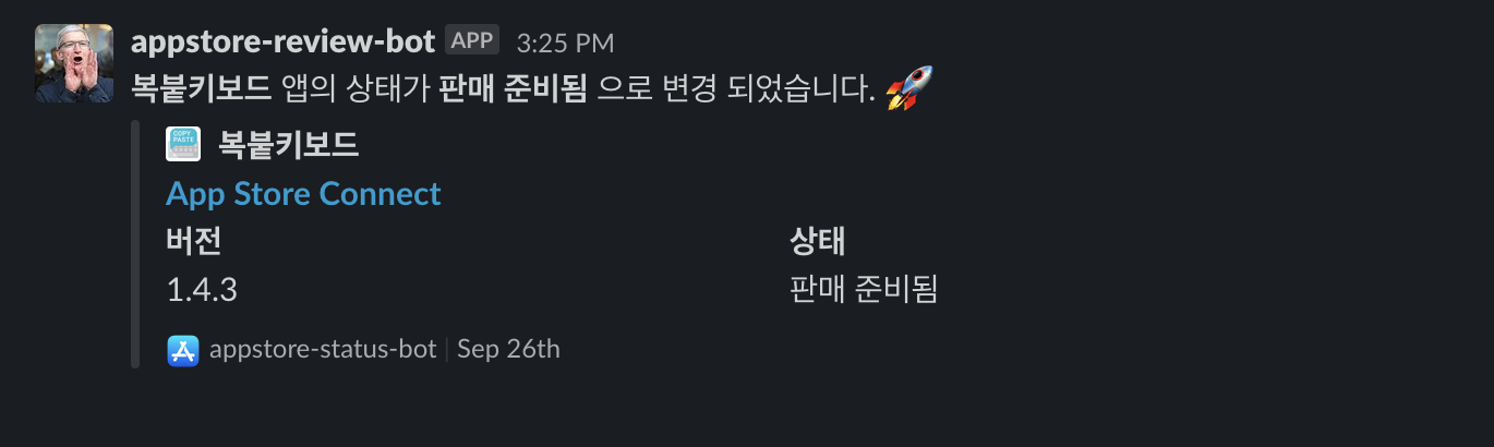 앱으로 푸시도 오기 때문에 상당히 편리합니다. 하지만, 개인앱이 아닌 이상 앱의 심사 상태를 함께 일하는 팀원 혹은 멤버들과 공유해야 할 일이 종종 있습니다. 매번 심사를 올리고 심사 상태를 확인해서 공유를 해주어도 되지만, 개발자라면 당연히 자동화에 대한 욕심이 있을거라고 생각합니다.