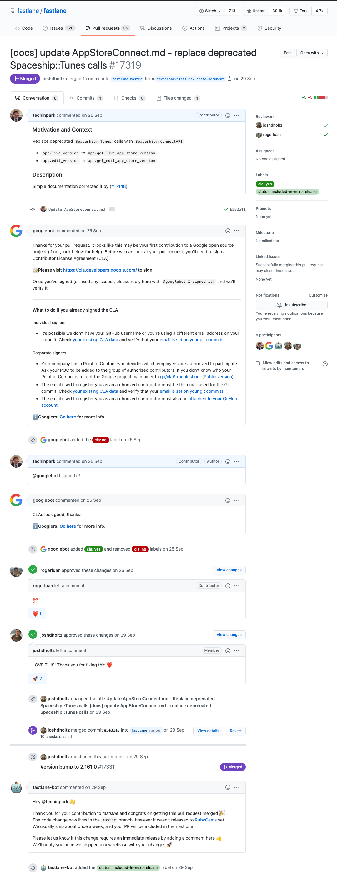 얼떨결에 평소에도 잘 사용 하고있는 Fastlane에 기여를 하게되어서 기분이 매우 좋았던 뿌듯한 경험입니다.